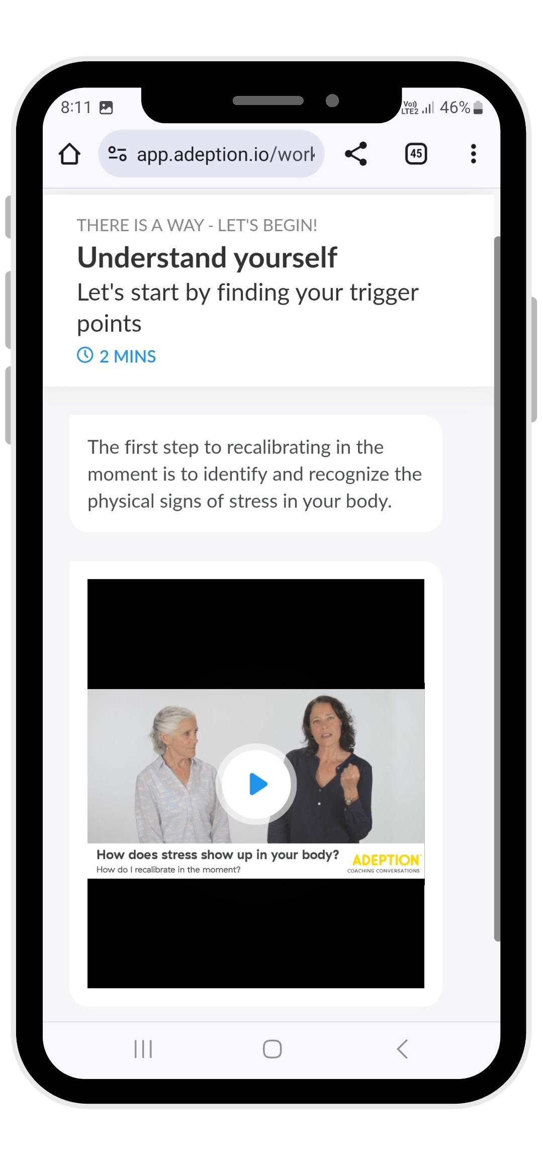 Always available via the Adeption platform. Use as needed to support working through a challenge; help clarify thinking, and plan a path forward.